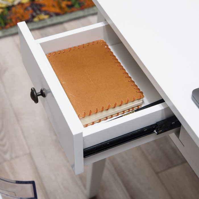 Get down to work with the convenience and functionality of the Davis Laptop Desk with Power Outlet. Thanks to built-in power outlets, this desk lets you charge your laptop or other electronic devices as you work. You'll no longer have to fight over outlets or place your devices in precarious positions, just to get them charged. This piece is crafted from engineered wood and it features two drawers and a lower shelf for storage.