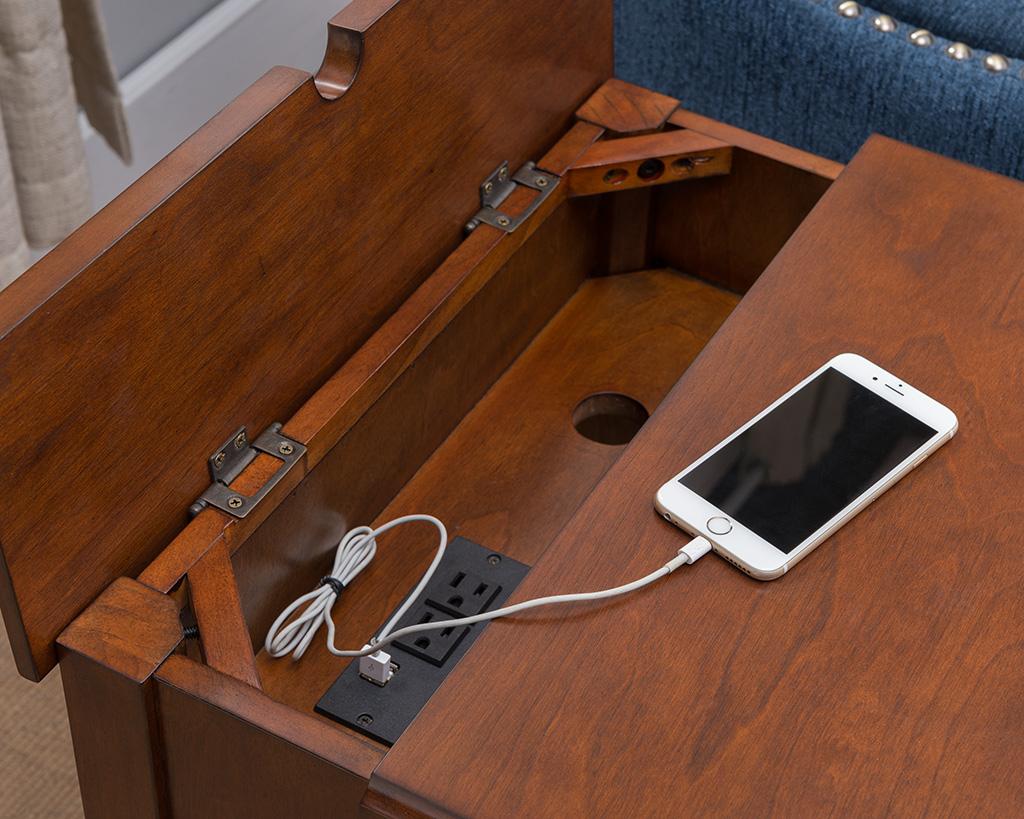 The Baxter Side Table with Charging Station is a smart choice for functional living room furniture with style. It features a hidden charging station compartment to conveniently power up your electronics as well as hide those messy power cords.