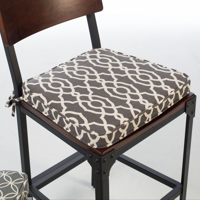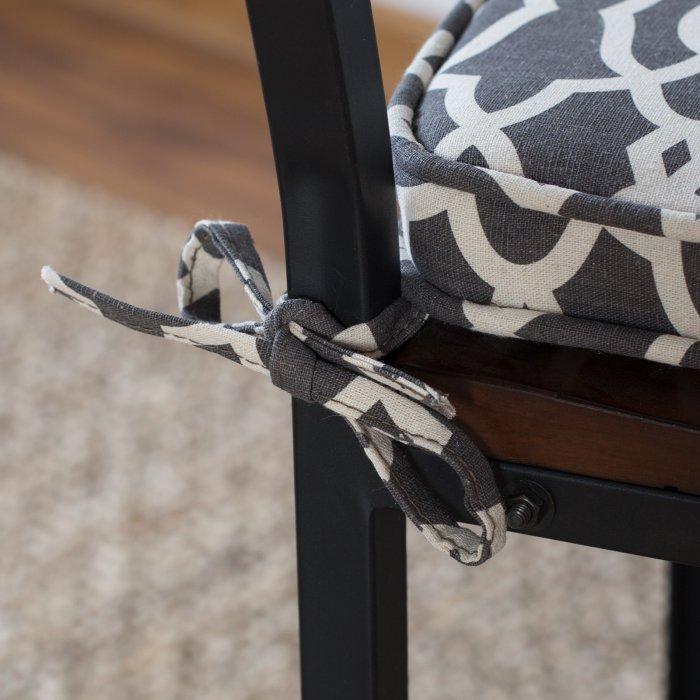 Add comfort and new style to your dining chairs with this Printed Indoor Dining Chair Cushion. This cushion features plush polyester filling and comes in select geometric patterns and colors. It features a smooth top, tailored piping trim, and ties at the back so this cushion stays in place.