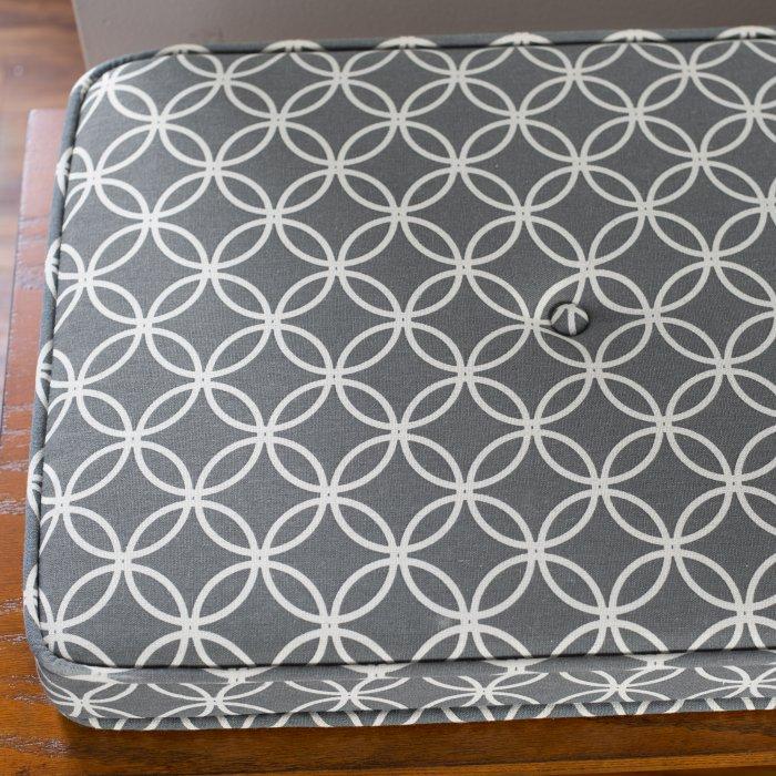 Add style and comfort to your bench with this Printed Indoor Bench Cushion. This comfortable polyester filling ensures comfort and a variety of geometric patterns in contemporary color options brings the style. This bench cushion sports a button tufted top and tailored piping trim.