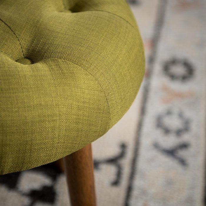 ◦Tufted cushion upholstered in plush polyester fabric