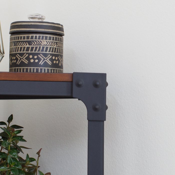 This bookcase fits snugly into unused corners, where it can display your favorite novels and figurines. This industrial-style bookcase features an open design that's accomplished with a powder-coated metal frame supporting engineered wood shelves with high-quality birch veneers. The four fixed shelves offer room to display to your heart's content. Complete your living room's look with the other items in Trenton collection (sold separately).