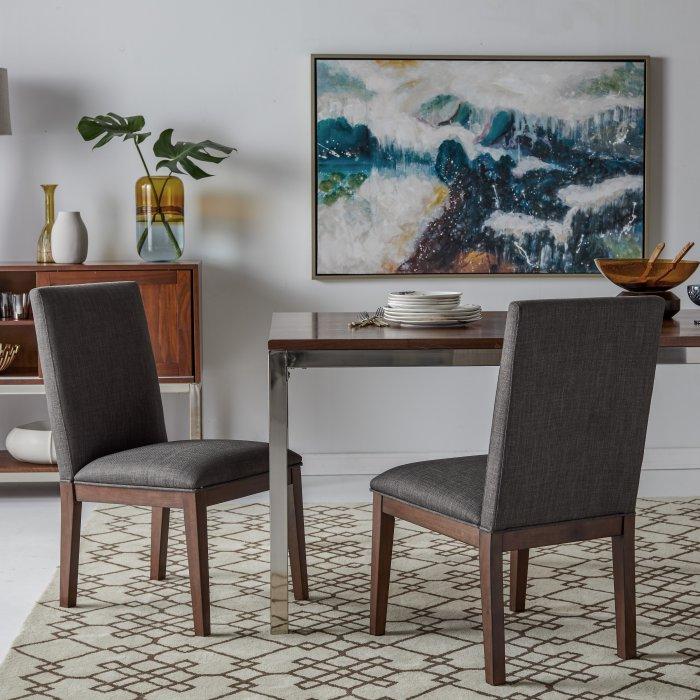 The Abbott Parsons Dining Side Chair makes it a pleasure to spend hours lingering over food and drink with family and friends. The fabric-upholstered seat sits upon an engineered wood frame (also known as medium density fiberboard) which resists rotting and warping over time. Customize the chairs by selecting your favorite from our available color options. This Parsons-style chair set is part of the Abbott collection, which offers a whole range of dining and seating options for your kitchen, dining room, and home bar. We recommend that you pair your chairs with the matching Abbott Parsons Dining Table, which is also available at RedHouse.