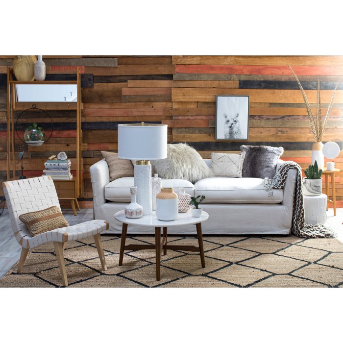Tapered and flared legs give the Mid Century Modern End Table its mid-century appeal. Clean lines lend a spacious feel to your living room. A light walnut finish on this end table ensures it will work with any design aesthetic. This end table features a circular top of birch veneers that offers room for a lamp and whatever else moves you.