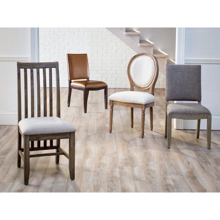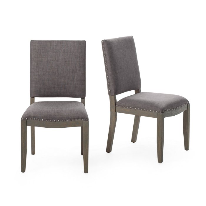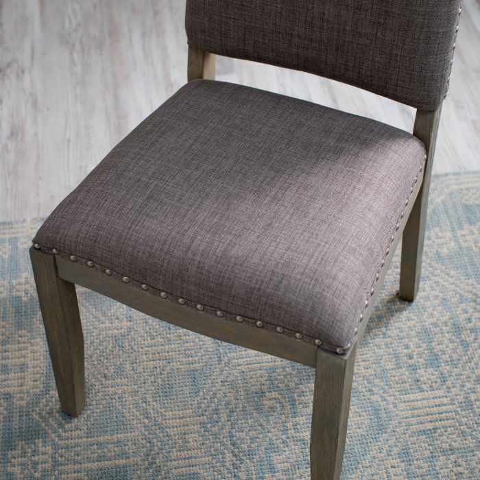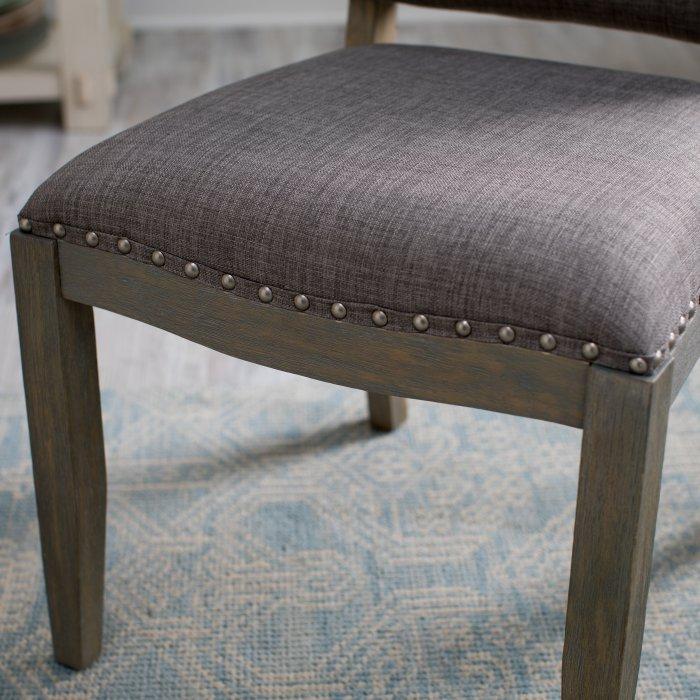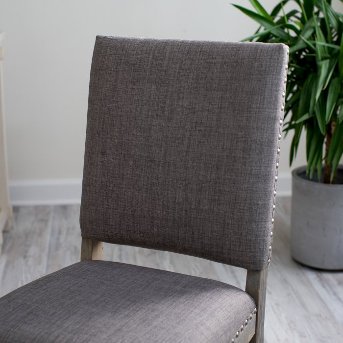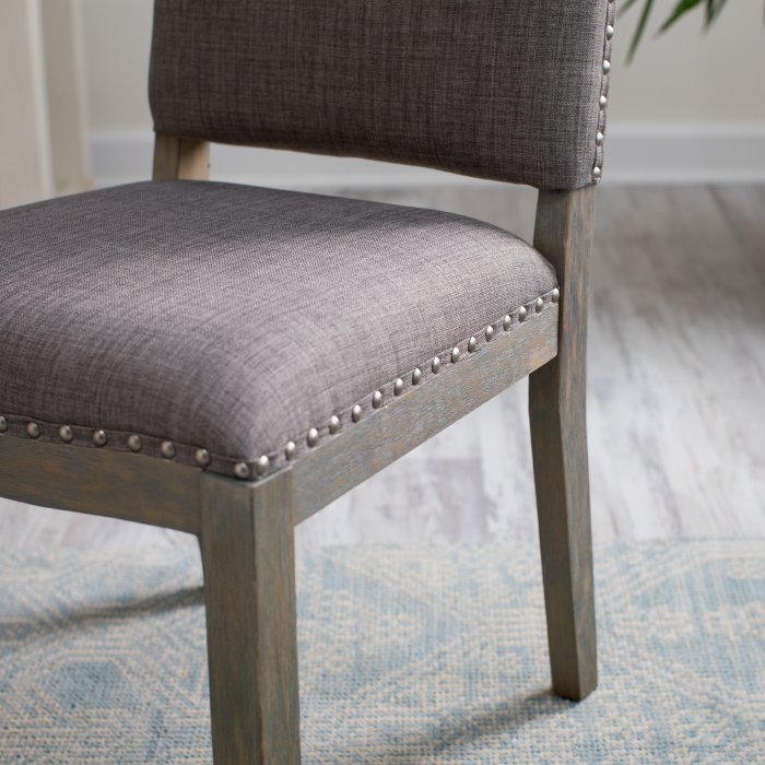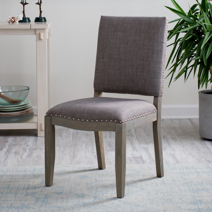 This Newport Driftwood Dining Chair made from birch wood and upholstered with durable polyester, this set is built to last. Featuring a brown wood finish and coordinating brown fabric, these chairs are able to make a statement without stealing the spotlight. The perfect accent to any dining room table, the nailhead trim finishes everything off with a tailored look. Assembly required.