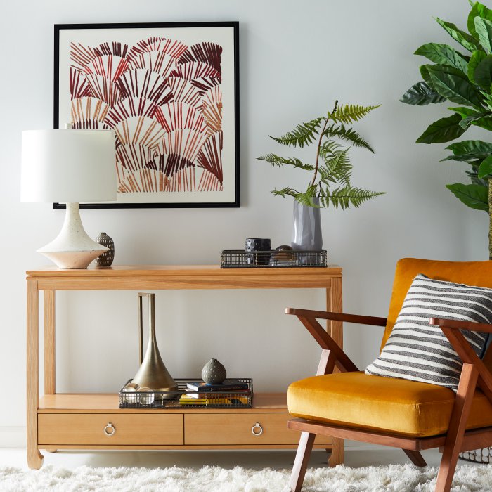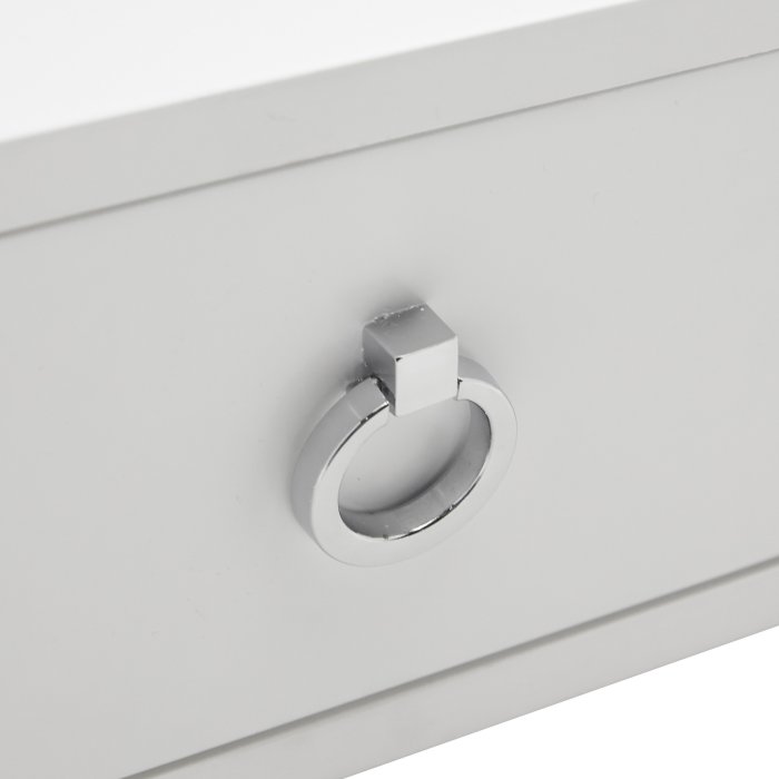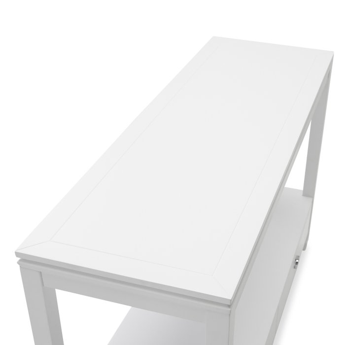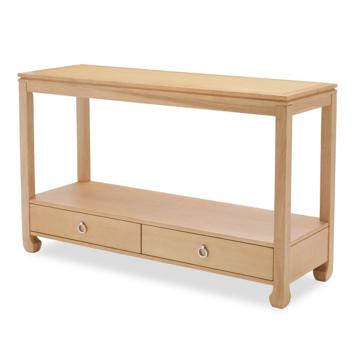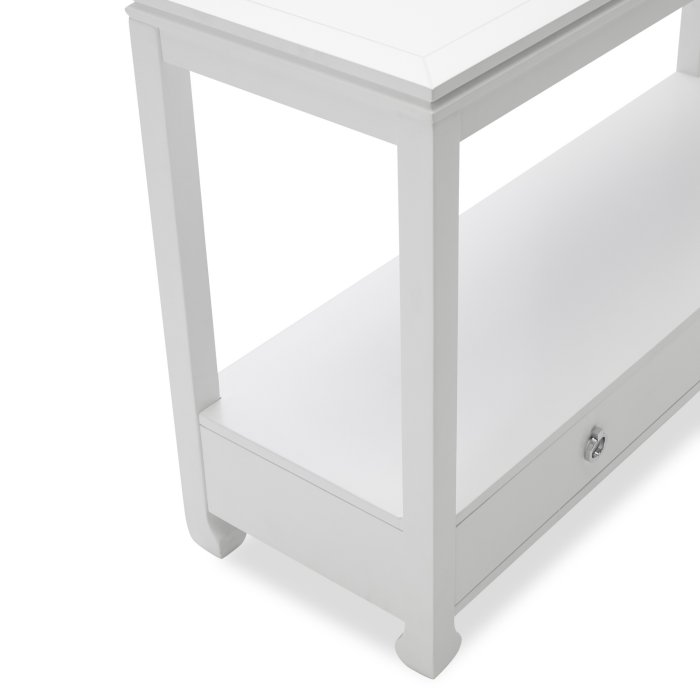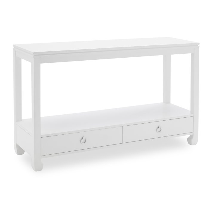 Place the Rohan Console Table in your entryway or living space for storage and display. This console table is constructed of engineered wood and birch veneer. Choose from the available finish options to best coordinate with existing furniture and décor. Two drawers are equipped with round, silver pulls for opening and closing. This table features a traditional style that will pair well with other items by Rohan Collection.